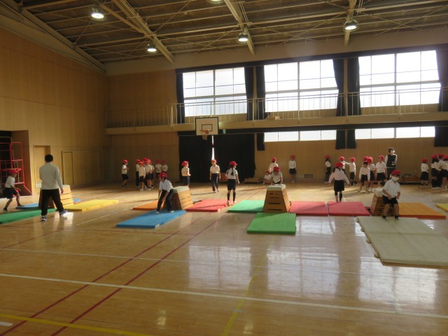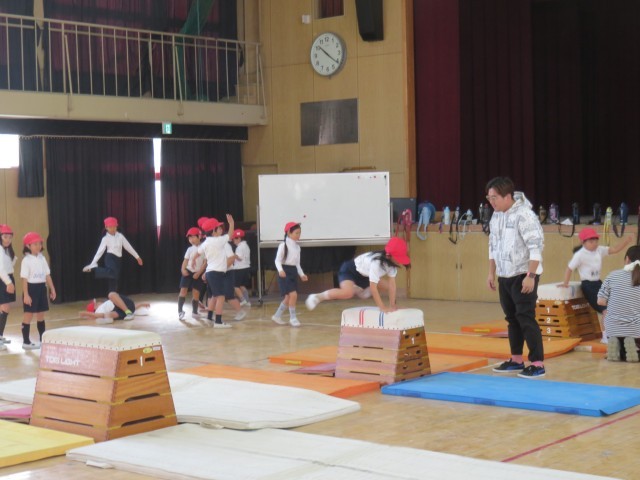 体育の授業の様子です。講堂で跳び箱遊びをしていました。子ども達の動きを見れば上達しているのが分かります。自信をもって跳び越す子も、あと少しで跳び越せそうな子も、それぞれの目標を達成できるようにがんばりましょう。