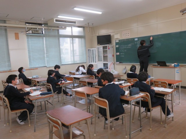 算数の授業の様子です。習熟度別少人数で学習をしていました。余りの出ない小数のわり算の計算の仕方について考えていました。難しい問題ですが、重要ですのでしっかりと計算の仕方を覚えておきましょう。