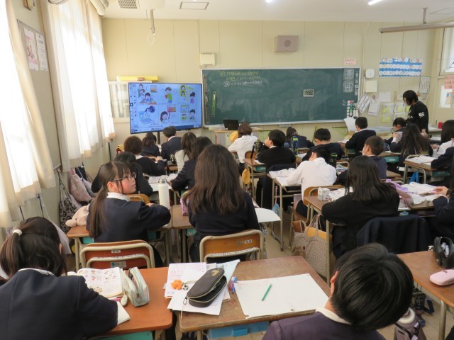 社会科の授業の様子です。情報社会の問題点についての学習でした。インターネットにある問題点を考えていました。今一番必要な内容かもしれませんね。学んだことを自分の生活に振り返って、活かしていきましょう。