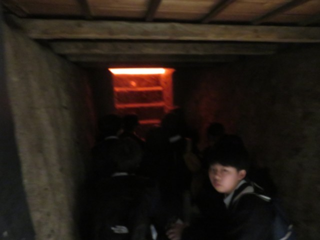 展示物には、戦時下の建物や防空壕を再現したものや、写真・絵画や体験談、プロジェクトマッピング等、たくさんの展示がありました。みんなしっかりと見学していました。