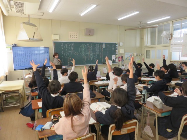 国語の授業の様子です。説明文「数え方を生み出そう」の学習をしていました。日本語には、ものを数えるときにの数え方がたくさんありますね。同じものでも複数の数え方をもつものもあります。そんな中で新しく生み出された数え方を読み取っていました。