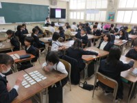 講堂で児童集会を行いました。今日は、音当てクイズでした。録音された音が何の音かを当てるクイズでした。3択クイズだったので多くの班が全問正解でした。全問正解の班を、みんなで称賛し合いました。