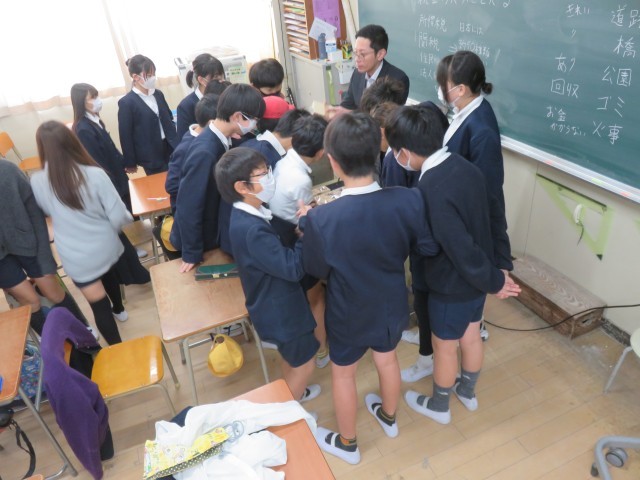 社会科の授業の様子です。税務署の方から租税教室の出前授業を受けました。税金のことを具体的に教えていただきました。また1億円の札束を見させてもらい、子ども達はハイテンションになっていました。今日の授業は子ども達の心に深く刻まれたと思います。