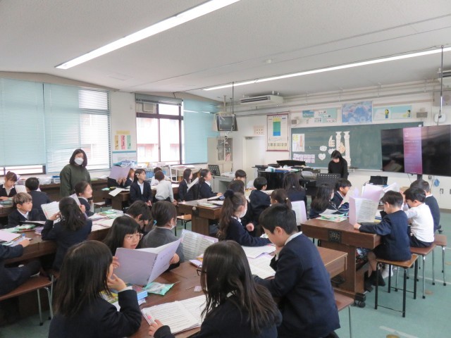 音楽の授業の様子です。「変わらないもの」の合唱の練習をしていました。この曲は、人との別れがテーマになっており、別れのシーンに映える歌です。卒業お祝い集会で披露する曲です。心を込めて歌えるといいですね。