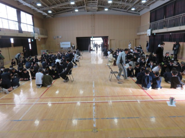 第一回戦の様子です。なかよし班対抗で、低・中・高学年に分けて3回行います。みんながんばりましょう。