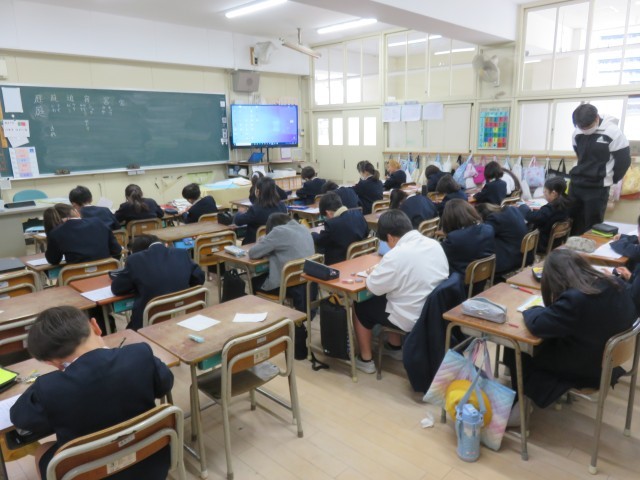 国語の授業の様子です。新出漢字の学習をしていました。「庭・追・宿・宮」など難しい漢字を習っていました。3年生も後半になると、進出漢字の量も増えるし難しくなりますね。がんばって覚えましょう。