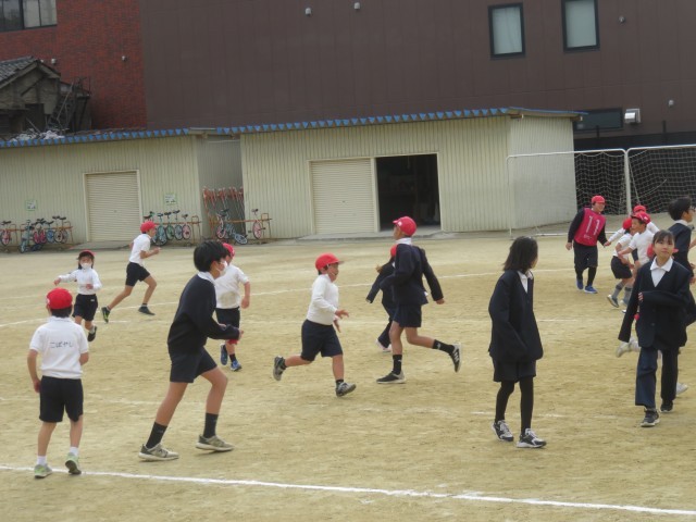卒業を前に6年生が1年生との交流活動をしました。運動場で手つなぎおにごっこをしていました。1年生も6年生も笑顔で運動場を走り回っていました。1年生はこの1年間、6年生には本当にいろいろお世話になりました。どちらの学年にも、楽しい思い出のページがひとつ増えました。心温まる時間になりました。