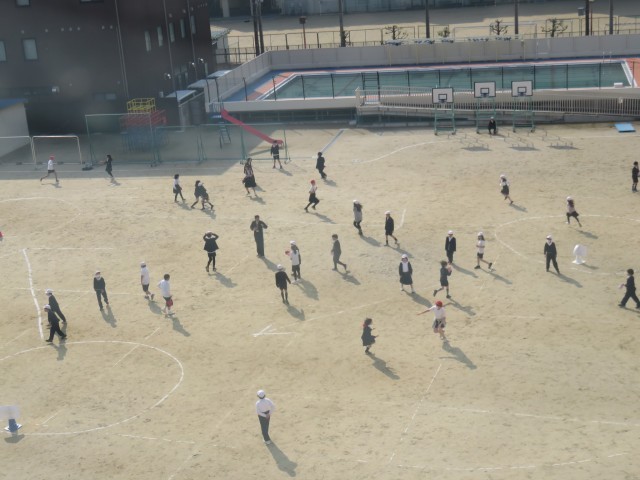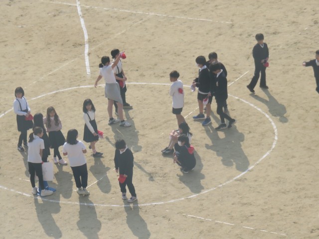 6年生と4年生が、卒業前の交流授業を行いました。運動場で3色鬼ごっこをしていました。3チームで鬼ごっこを行うとなかなか終わりません。それだけ楽しさが続きます。どちらの学年にもいい思い出ができました。