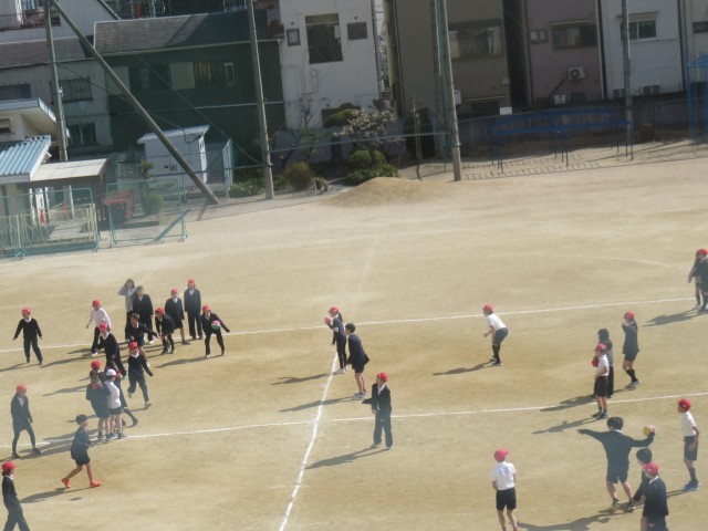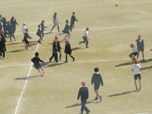 運動場で縄跳び・6年生の異学年交流授業が行われました。ドッジボールをしていました。普段から運動場でドッジボールをしている場面をよく見かけます。力も拮抗しているのでいい試合になりそうです。5年生には、今までがんばってきた6年生のいいところを引き継いで、学校を背負っての活躍を期待しています。