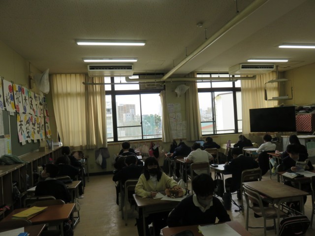算数の授業の様子です。テストをしていました。みんな静かに集中して、問題を解いていました。がんばりましょう。
