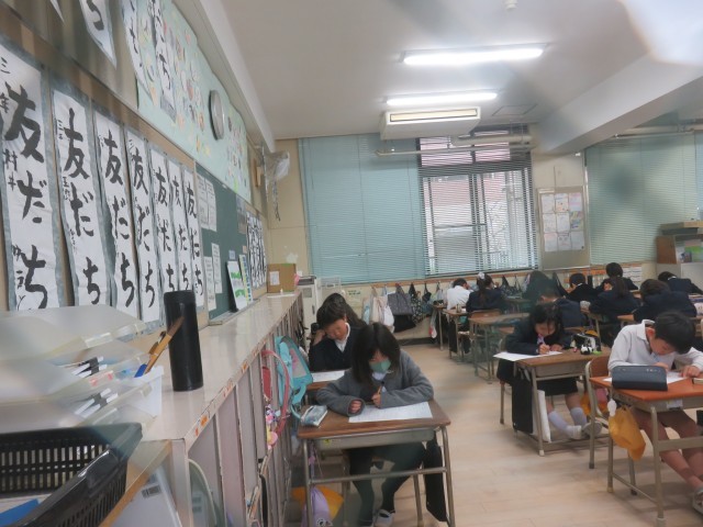 国語の授業の様子です。テストをしていました。集中力を途切れさせないために、教室の外から撮影しました。みんな、がんばりましょう。