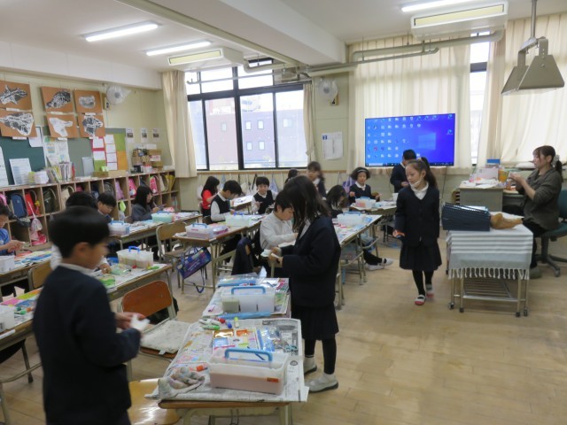 図画工作科の授業の様子です。卒業生に贈るお祝いのメッセージを作っていました。今までお世話になった6年生に、心を込めて感謝を伝えましょう。がんばりましょう。