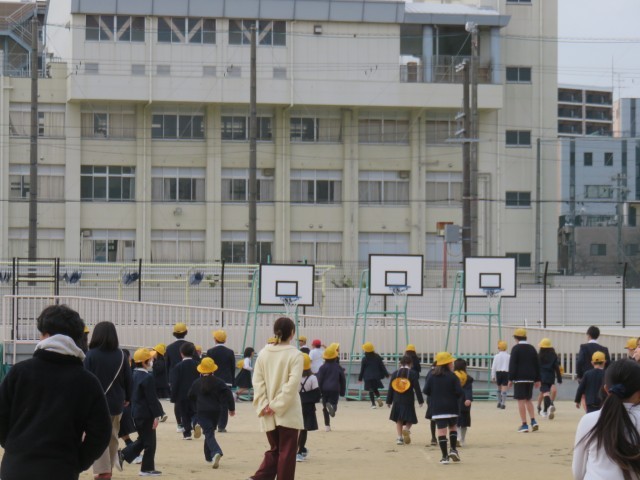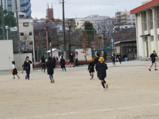 運動場で今年度の最終の児童集会を行いました。今回は、班対抗の宝探しゲームでした。班で協力して運動場のどこかに隠してあるカードを見つけるゲームでした。時間内の多くの班が、宝を見つけることができました。最終的にはすべての班が宝を探し当てました。宝を見つけた班に、みんなから称賛の拍手が送られました。