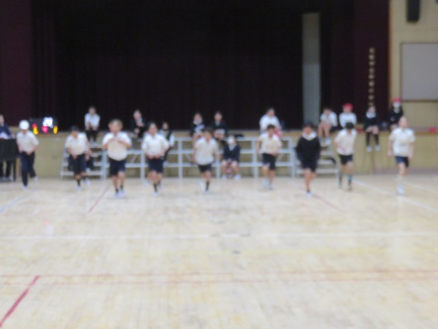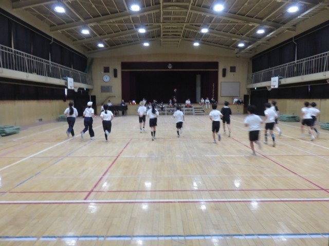 体育の授業の様子です。講堂で、シャトルランにチャレンジしていました。1学期のスポーツテストでしたときの値と今回とを比べてどれ位伸びたのかを調べます。よい記録を出した子は、区長表彰があります。自分の限界までがんばりましょう。