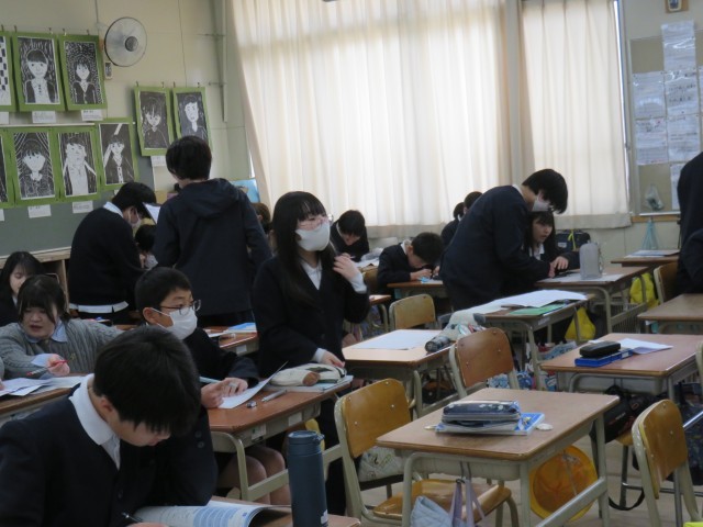 算数の授業の様子です。復習をしていました。この時期は今まで学んだことの復習をしています。基礎学力をすべて身につけて中学校に進めるようにがんばりましょう。間違えたことは特に念入りに復習をしましょう。