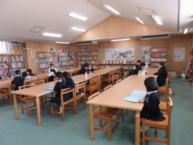 読書活動の授業の様子です。学年末で、今週から本を借りることができずに返却のみを行いました。子ども達は、思い思いに好きな本を読んでいました。