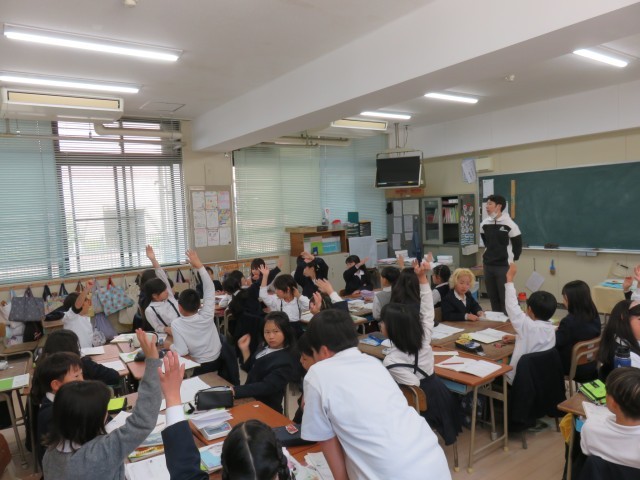 理科の授業の様子です。物の重さの学習をしていました。紙の重さを測って、同じ紙を変形させて重さが変わるのかを確かめていました。実験の結果をみんな積極的に手を挙げて発表していました。3年生は本当に挙手する子が多いです。素晴らしいですね。