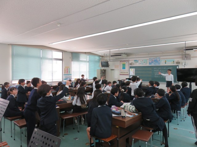 音楽の授業の様子です。さんぽの曲に合わせてじゃんけんをしていました。フレーズごとにじゃんけんをして、最後まで残った人が勝ちです。歌いながらじゃんけんをして、みんなで楽しいでいました。