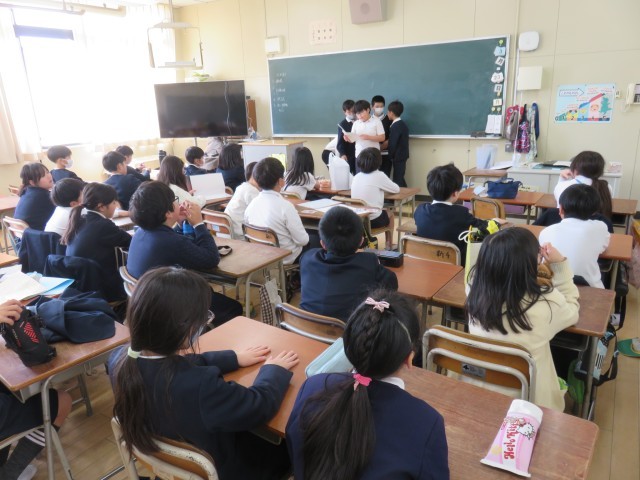 学級活動の授業の様子です。お楽しみ会をしていました。学期末のお楽しみですね。楽しい思い出をもって、次の学年でもがんばってください。
