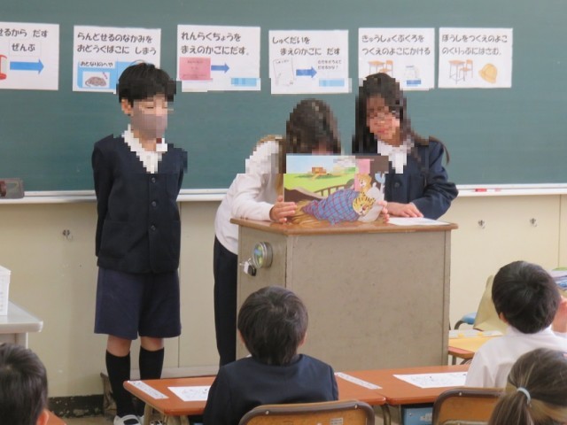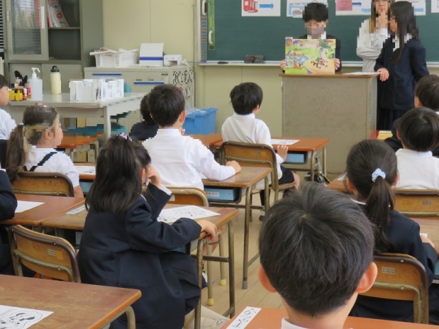 1時間目が始まる前の「朝の読書」の時間です。1年生の教室では、6年生が紙芝居を読んでくれました。慣れてきたら、読書も徐々に進めていきます。6年生、ありがとう。