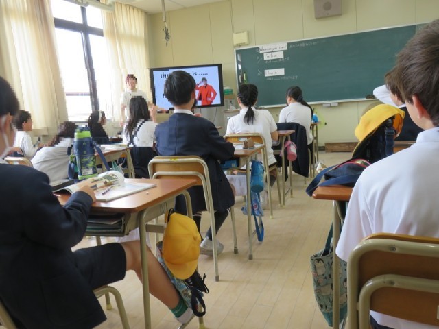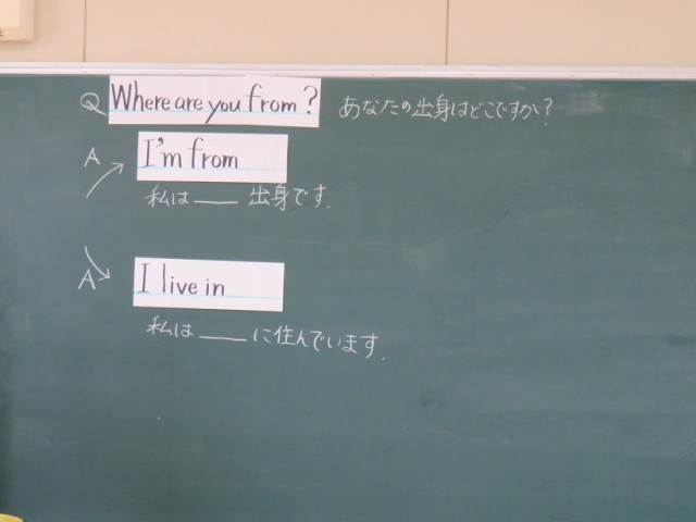6年生の英語の時間です。「Where  are you from?」あなたの出身はどこですか?楽しいスライドで、対話の仕方を練習しました。