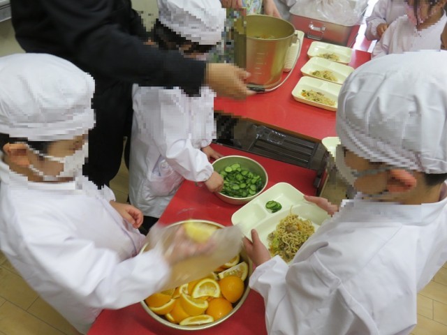 1年 給食の準備を自分たちで頑張りました!!