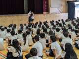 講堂で全校朝会を行いました。健康委員会からの姿勢体操に続いて、校長先生から熱中...