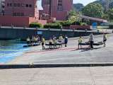 いかだ体験の様子です。ラッキーです。いかだは、組まれていたのですぐに乗ることがで...