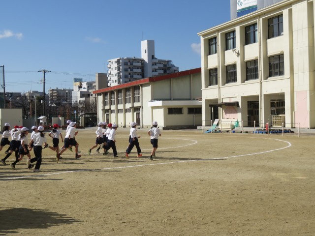 体育の授業の様子です。冬の体力づくりの一環で、持久走をしていました。持久走は、...