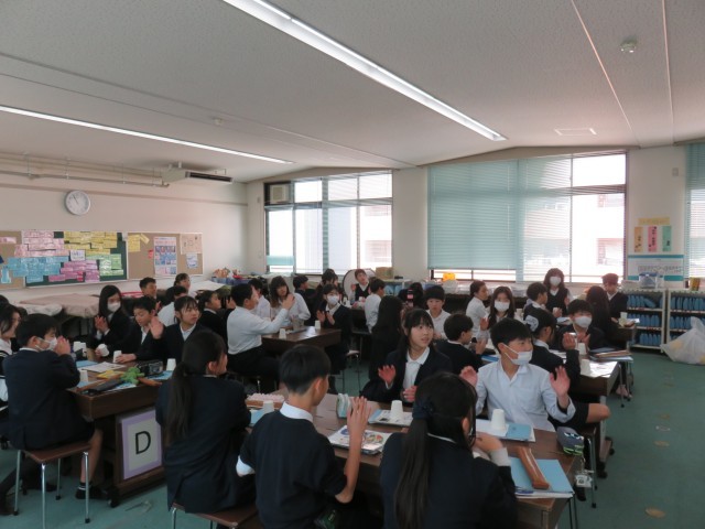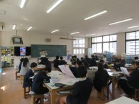 学級活動の授業の様子です。お楽しみ会の準備をしていました。各グループに分かれて...