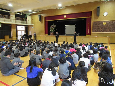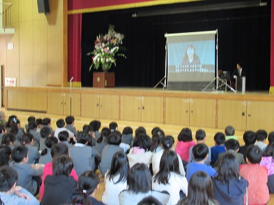 その後、校歌と大阪市歌を歌い、学校長の話を聞きました。