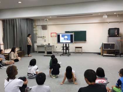 9月7日(土)13時30分から本校の多目的室にて、NTTドコモから講師さんが来てくださりスマホ・ケータイ安全教室が行われました。動画とクイズとお話をミックスしながら、低学年の子ども達にもわかりやすくご講座してくださりました。