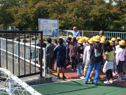 浄水場では、淀川の水がどのようにして日常使っている水道水になっていくのか、実際の工程を見学しました。子ども達は川の水がどんどんきれいになっていくのを見て、たくさんの処理や検査が繰り返されてやっと自分たちが安心して飲める水になることに感心していました。「これから蛇口をひねるときは、今日のことを思い出して水を大切に使おう」という感想をもらしている子どももたくさんいました。