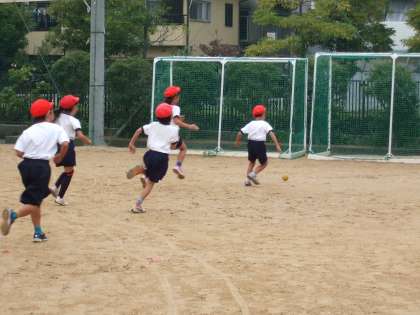 本校はサッカーのクラブ活動は盛んですが、野球については残念ながらあまり知らない子どもが多いです。今回の訪問では、元オリックス選手の羽田耕一さん、大久保勝信さんもスタッフとして来校されました。写真のように2年生の子ども達は、ティーボールの楽しさにふれ、スポーツの喜びを感じることができました。