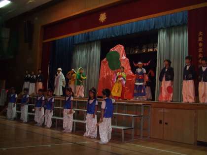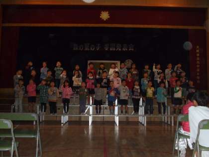 発表会当日、ステージに照明があたった瞬間、別世界になった舞台で、どの学年も真剣な演技が見られました。全力で自分自身を表現する子ども達の、目には・声には教室とは一味違った輝きとはりがありました。演じる人、効果音、照明、音楽、それぞれが調和し、みんなで学習発表会を創り上げていました。まさに一人一人が輝いた発表会でした。さらに、子ども達が劇を通して私たち大人に熱いメッセージを送っていました。努力、勇気、協力、友情、感謝の心、人を思いやることの大切さ・・・などでした。どれもみな大切なことですが、今の社会ではともすると忘れがちなことを子ども達は劇を通してあらためて私たちに教えてくれました。