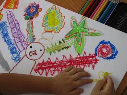 1年生の図工科「おしゃれなくじゃく」の様子です。