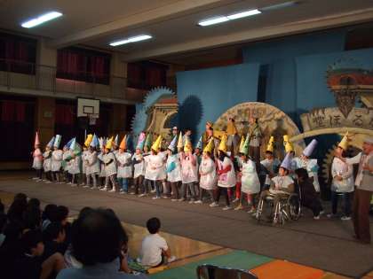 劇は劇団風の子九州さんの「なるほ堂ものがたり」でした。子ども達は楽しい展開のお話に大爆笑で「もう、この劇、面白すぎ」というつぶやきが聞かれるほどでした。この劇には、4年生が出演しました。7月にリハーサルをし、その後も練習をしたり衣装を作ってきたりと取り組んできた成果を発表することができました。何より、子ども達自身が出演を楽しんでいました。