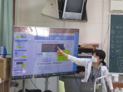 電源の入れ方や、ログオンの方法などをひとつずつていねいに学びました。教室の写真も撮ることができました。