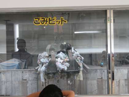 ごみを受け入れるプラットホームやクレーンを操作する部屋、24時間中、機械の動きを監視している中央制御室などを見学させてもらいました。