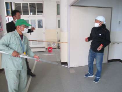まず、訓練の前に、緊急時の放送や、教室での避難の仕方について各学級で確認しました。そして、教員が不審者を演じて他の教員が対応の訓練をしました。その後、児童が運動場に避難する訓練をしました。