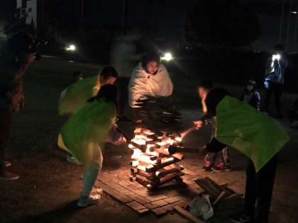 火の女神(教頭先生?)の登場から始まり、みんなで火を囲みながら、ゲームを楽しみました。