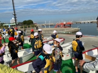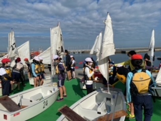 4人で1つのヨットを組み立て、2人ずつ乗り込み海に出ます。