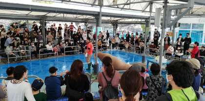 セイウチショーを観ています。セイウチの大きな体を目の当たりにできます。