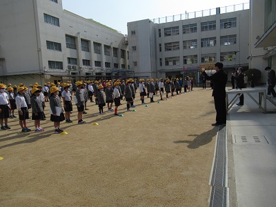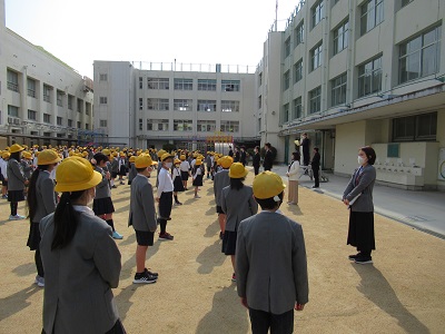 大阪市歌と校歌を歌い、学校長の話を聞きました。