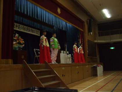 2月27日、民族学級の卒業式を行いました。4名の児童の卒業を5、6年生の全児童と、民族学級の全児童、1〜4年の出席希望した児童達がお祝いしました。