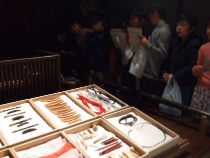 3学期に社会科で学習した「くらしのうつりかわり」のまとめとしての見学です。館内には、大阪市の昔の町並の再現や使用していた道具が展示してあり、子ども達は興味深げに見ていました。また、見学メモも真剣にとり「書きすぎてスペースが足りないよ」というくらい気づいたことをメモしていました。