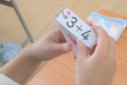 1年生は算数で、たしざんを学んでいます。