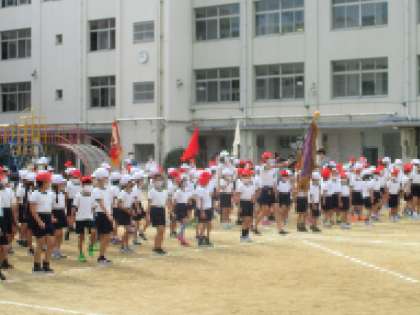 1時間目でしたが暑い日差しの中、どの学年もしっかり担当の先生の話を聞いてがんばっていました。
