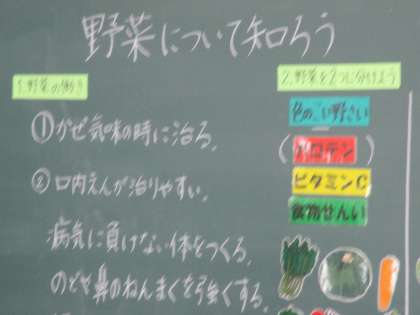 「野菜の働き・野菜の種類の分け方・野菜を食べる工夫」についてみんなで考えました。