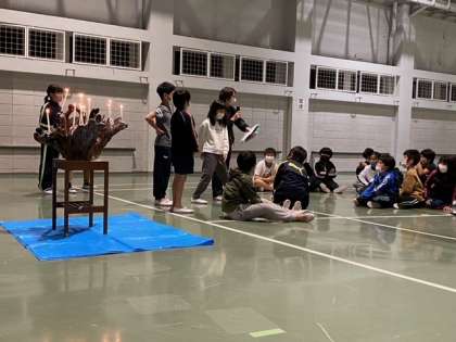 雨天のため、体育館にてキャンドルファイヤーを行いました。